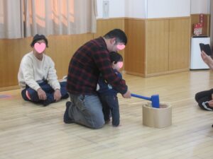 2F子どもシアターでは、紙芝居ボランティアしゃぼんだまのお二人が、手あそびや紙芝居を読んでくれました。「だるまさんがころんだ」参加型 「いたずらきつね」民話