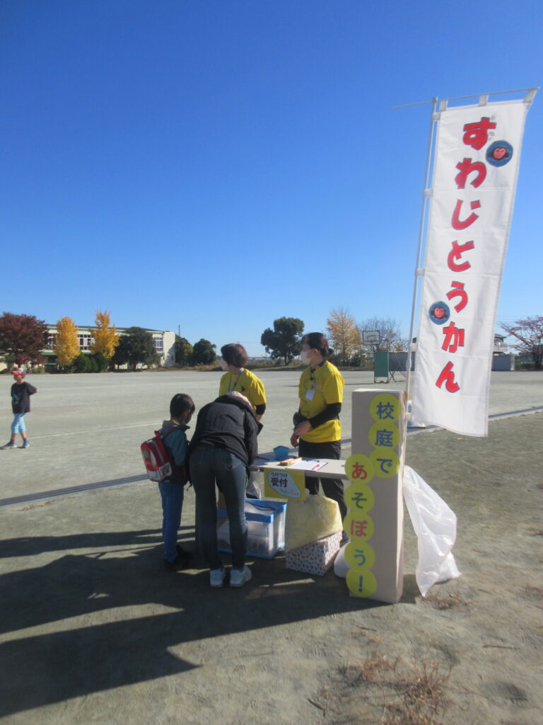 諏訪小学校校庭で受け付け開始😊