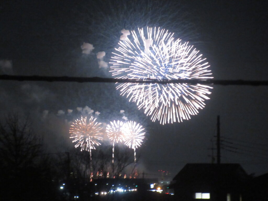 校庭で遊ぼう!が終わった夜、児童館からきれいな花火が見えました😊