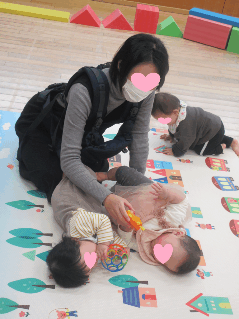 今月は、ふたごちゃん4組としごちゃん1組参加してくれ、にぎやかなひろばとなりました(≧▽≦)