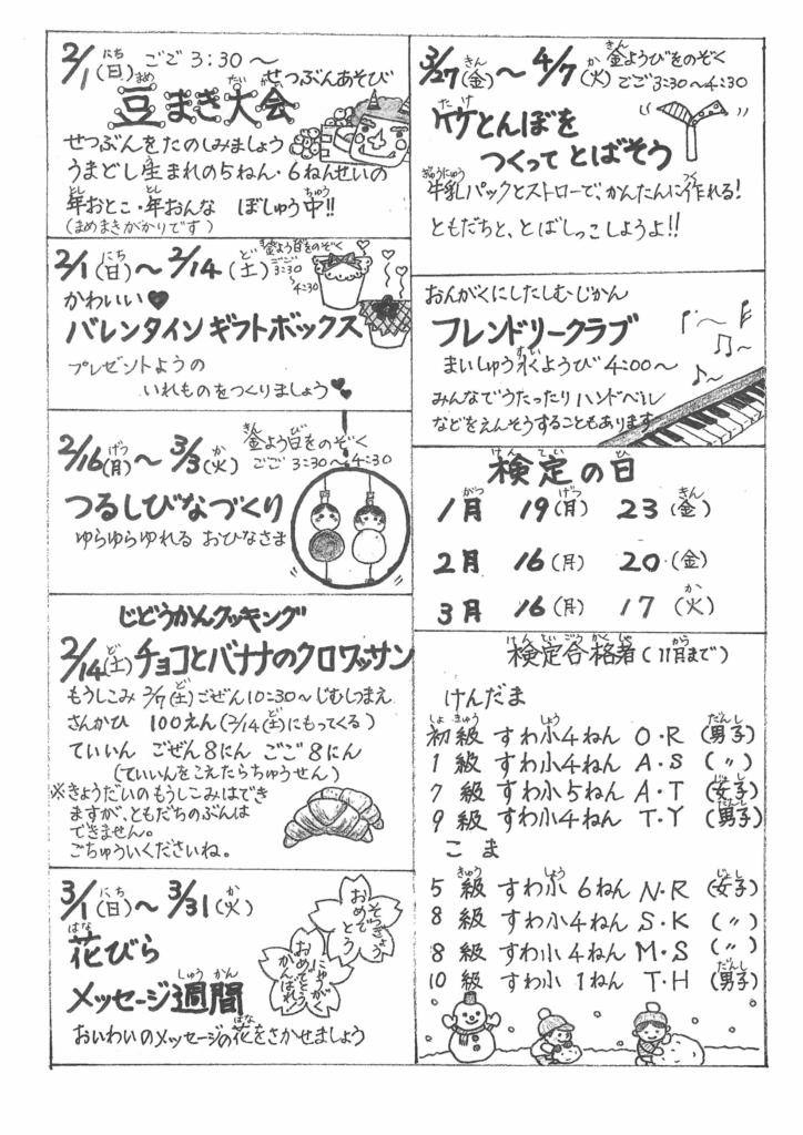 じどうかんだより冬号(令和7年度) 2025 12/15 じどうかんだより 諏訪児童館 2025年12月15日 じどうかんだより冬号(令和7年度)ダウンロード じどうかんだより 諏訪児童館 12月20日(土)小学生クッキングについて るんるんメール1月号(令和7年度) 関連記事 1月のサークル支援 2026年1月30日 1月の児童館の様子 2026年1月30日 1月のちびっこぱれっと 2026年1月29日 るんるんメール2月号(令和7年度) 2026年1月24日 明けましておめでとうございます 2026年1月9日 みんなで大そうじ 2025年12月28日 12月のちびっこぱれっと 2025年12月28日 12月の児童館 2025年12月28日