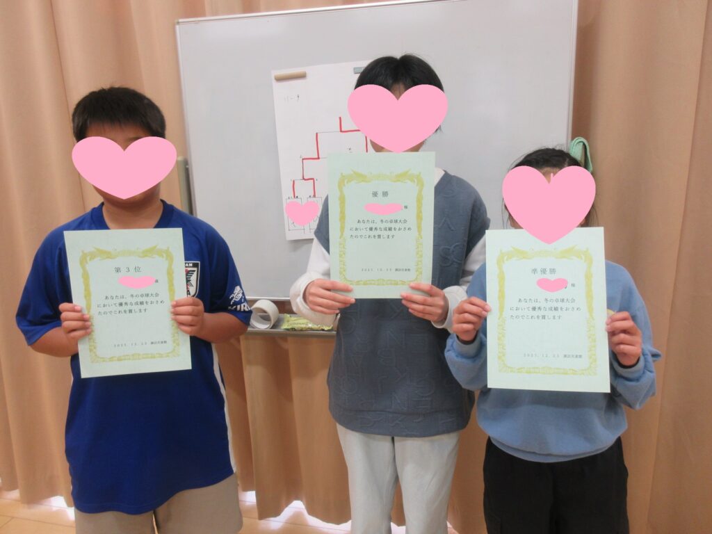 優勝 6年生女子 準優勝 6年生女子 3位 6年生男子 敢闘賞 5年生男子