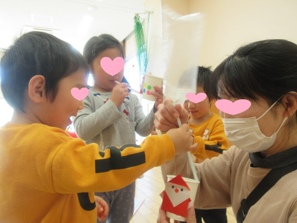 ♪あわてんぼうのサンタクロース♪に合わせて自分で作ったベルを鳴らしました😊