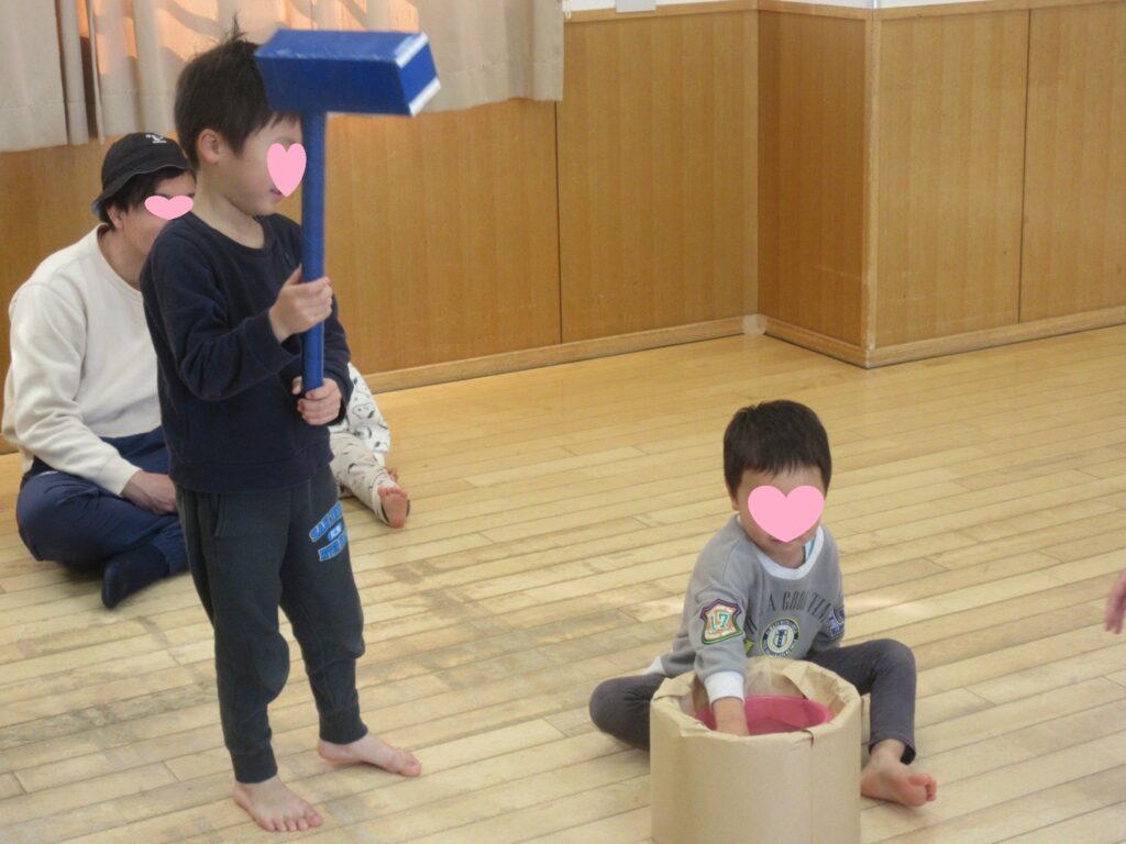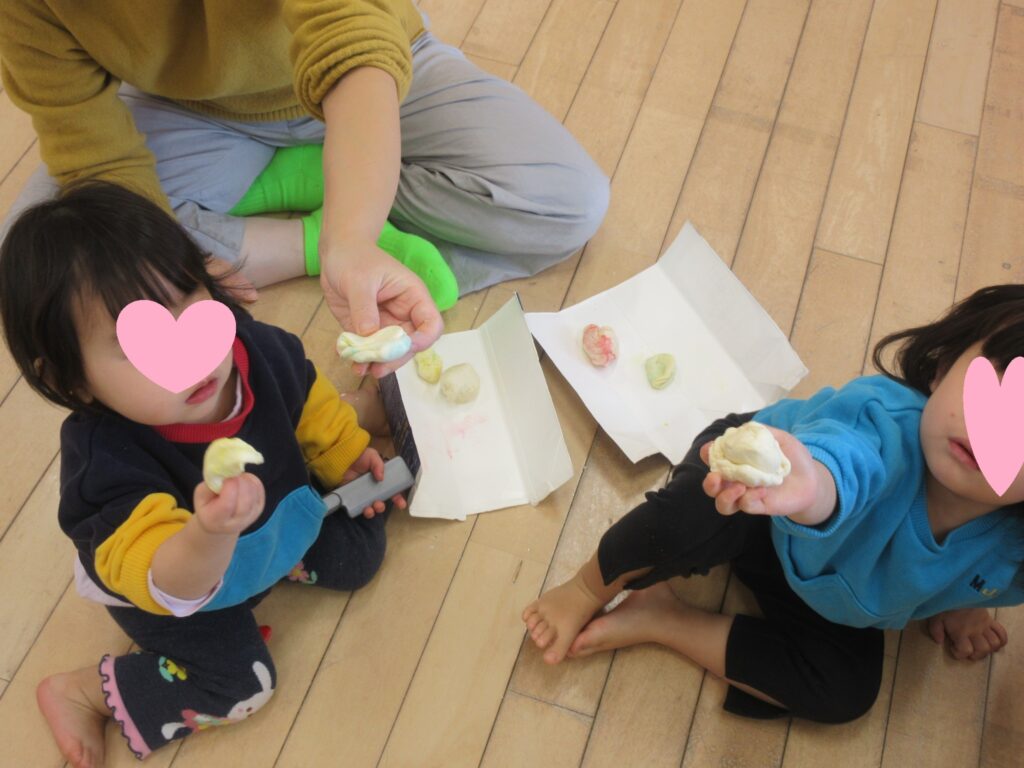 今月は、スライムを使っておもちつきごっこ😊