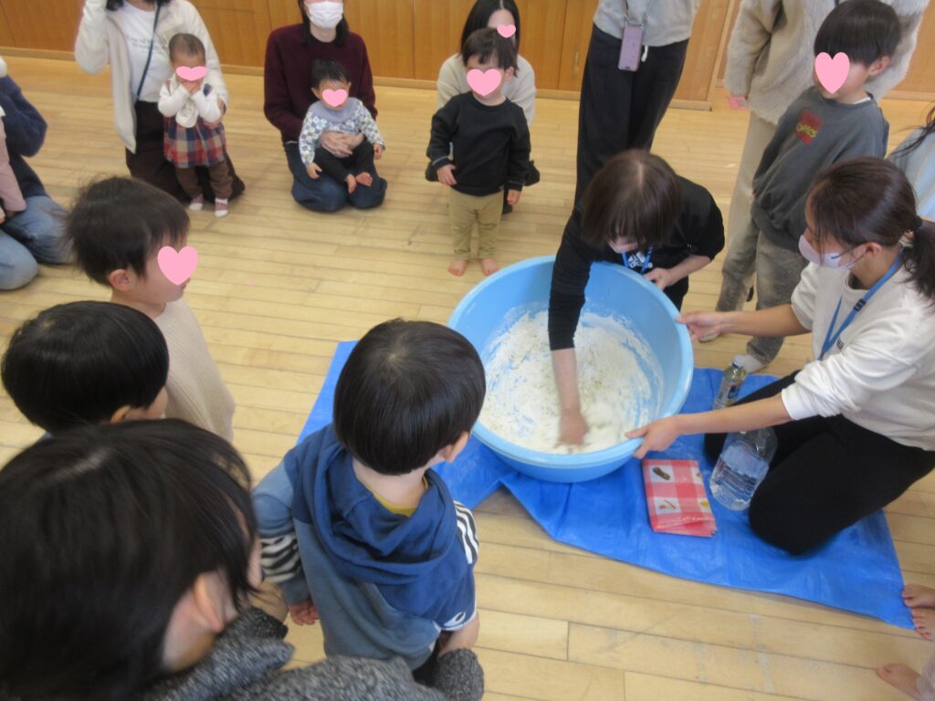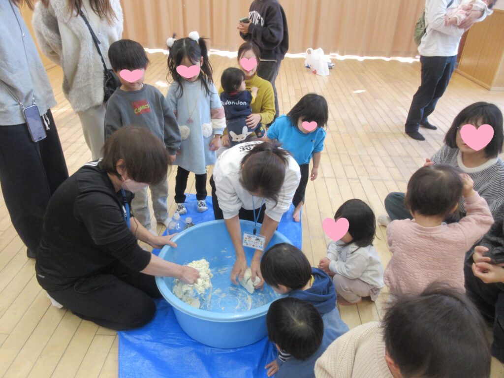 大きなたらいでこねこね!