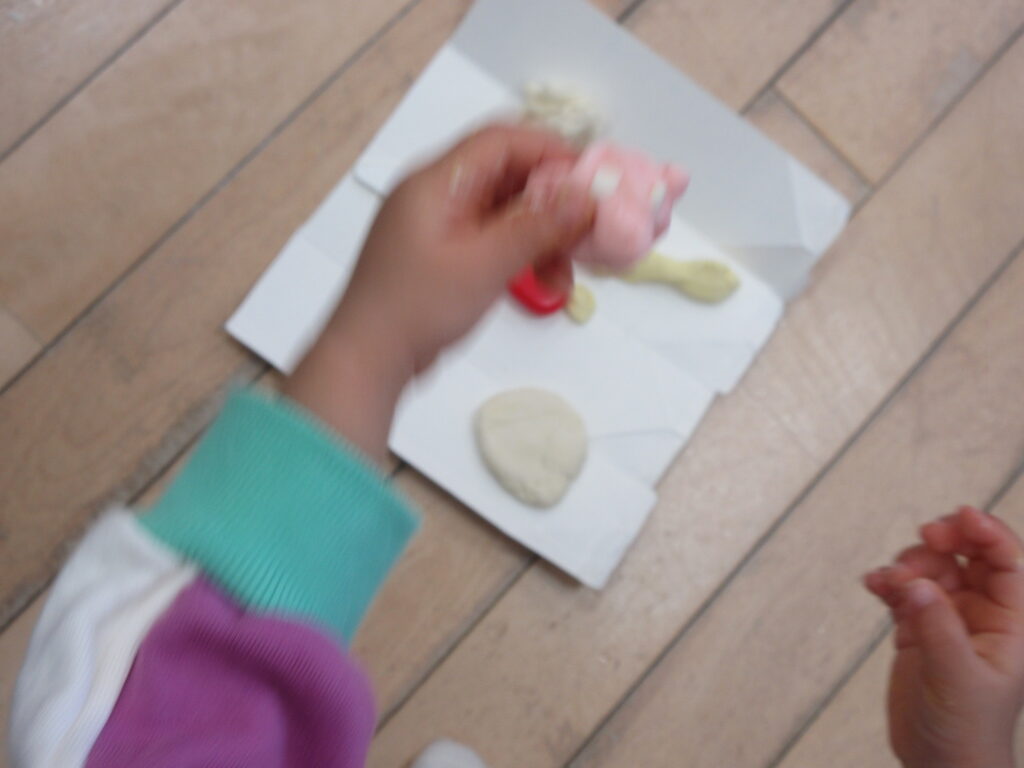 小麦粉ねんどの感触を楽しみながらいろいろな作品が出来上がりました😊