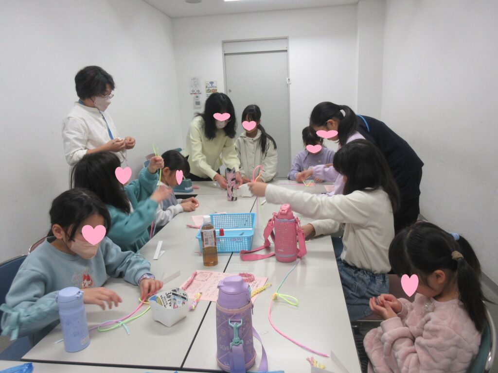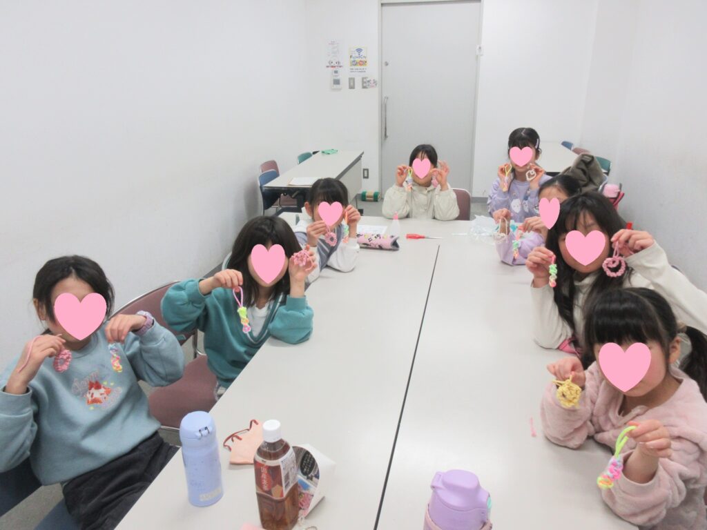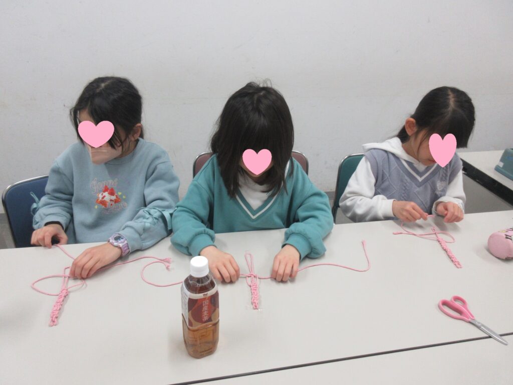 今回は、マクラメ編みでした!『難しかったけど楽しかった~』みんな、かわいいハートの形に仕上がりました💗