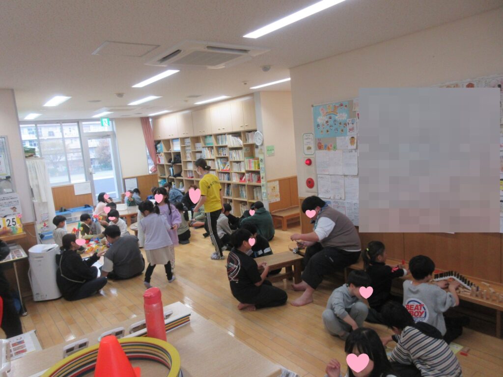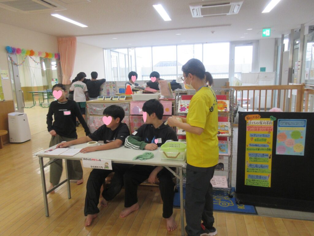 6年生がこどもボランティアとしておもちゃの消毒や1人で来館したお友だちと一緒に遊んでくれました😊