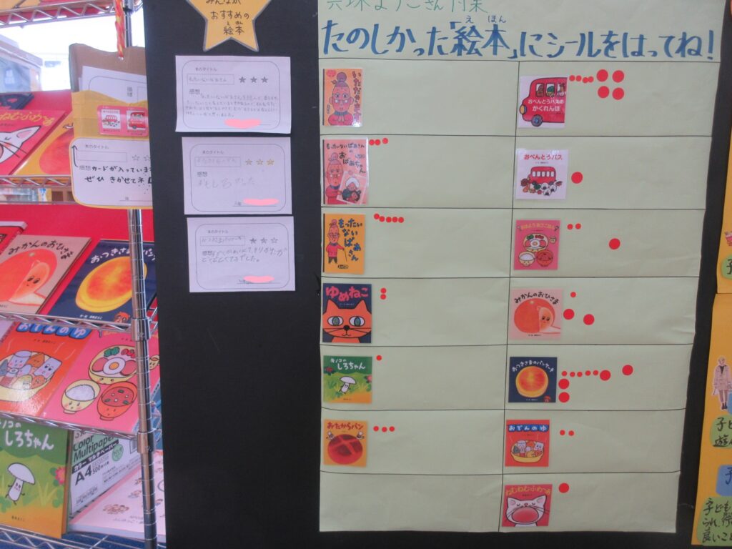 今年は、真珠真理子さんの絵本特集!楽しかった絵本にシールを貼ってね!