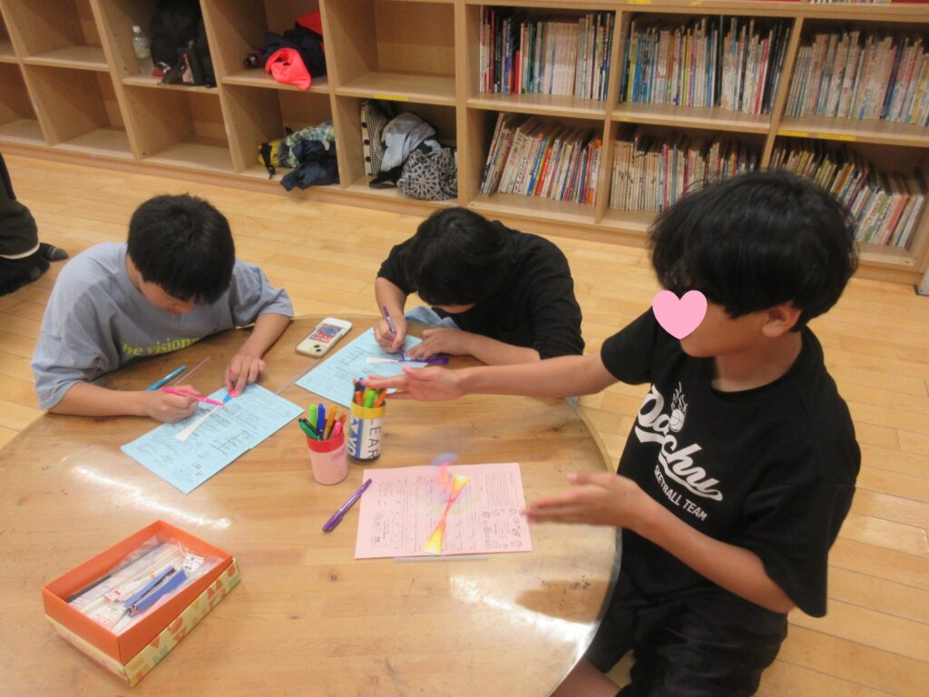 プロペラになる牛乳パックに模様を描いてストローをつけたら完成!
