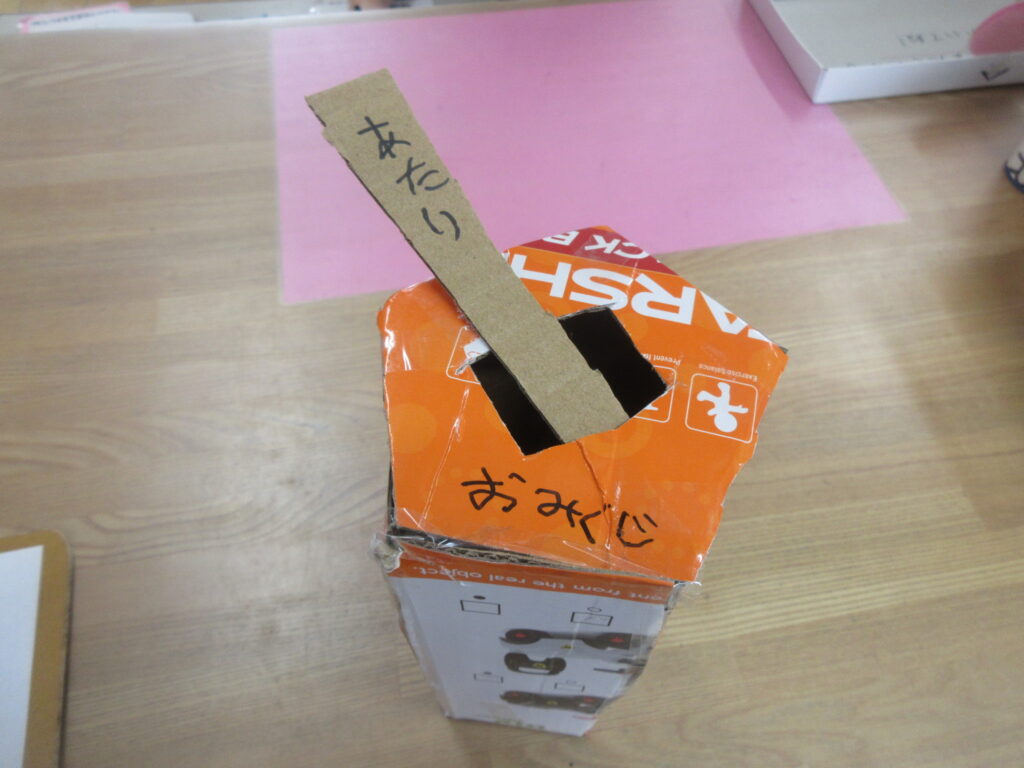 『何か作りた~い』と、3年生が言っていたので段ボールを渡すと立派なおみくじが完成しました!
