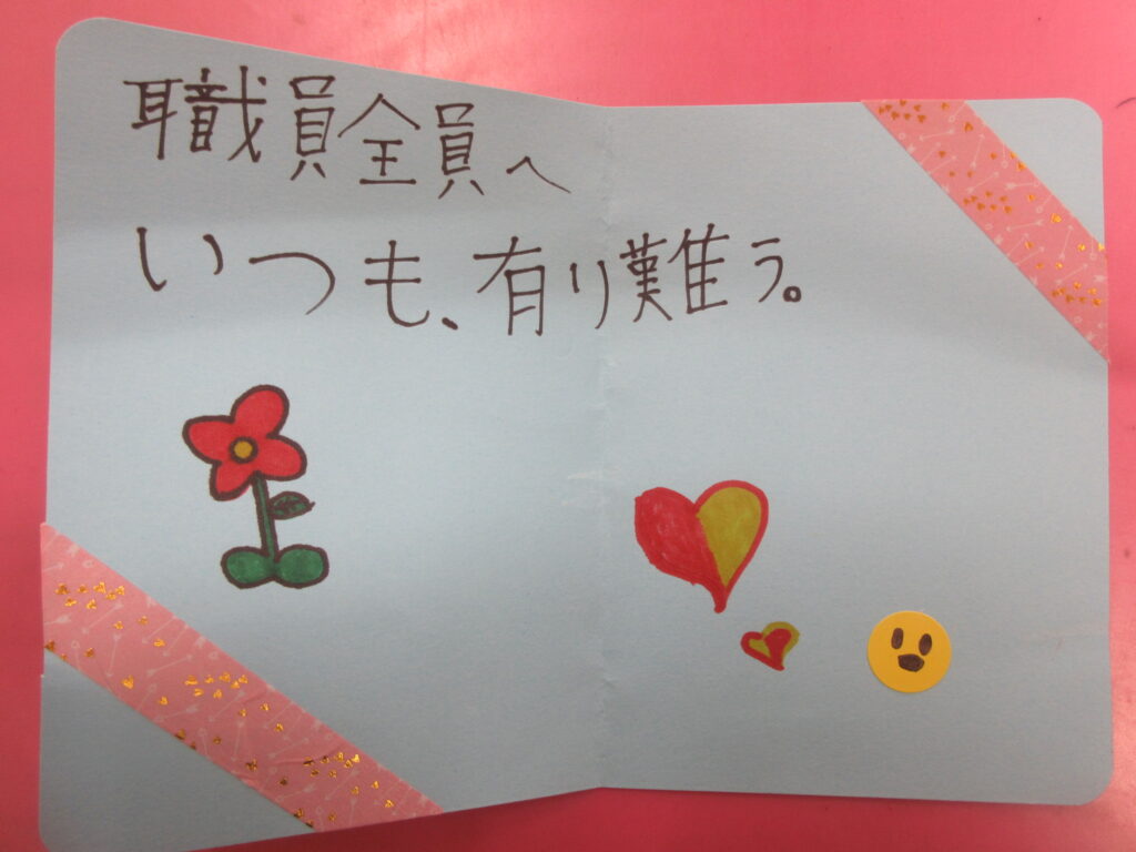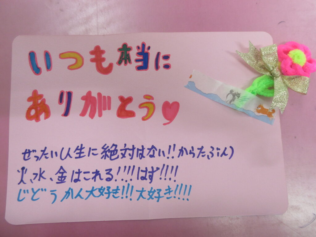 いつも遊びに来てくれている5年生が、母の日工作のカードををサプライズで諏訪児童館職員のために作ってくれました😊